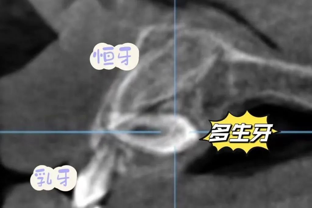 當超出正常數量或喺正常牙列以外、出現喺牙縫度嘅牙,我哋通常稱佢為多生牙或額外牙,喺診所度係一種常見嘅畸形牙,多見於細路換牙期。